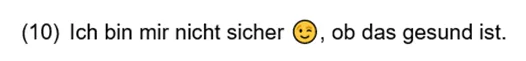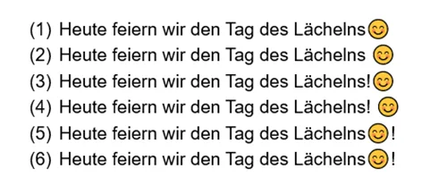 Chaos herrscht nicht nur bei der Unterscheidung der Begrifflichkeiten, sondern auch beim Gebrauch von Emoticons und Emojis nach einem Satz: So ersetzen viele Schreibende das Satzschlusszeichen (Punkt, Ausrufe- oder Fragezeichen) durch ein Emoticon oder Emoji, manchmal auch mit einem Leerzeichen dazwischen; zudem sind weitere Varianten im Umlauf: